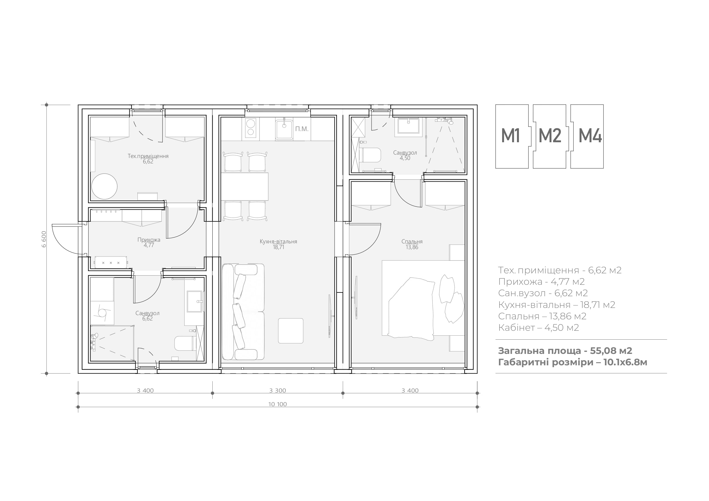 Advantages of 103-MDH: mobility (1 module), maximum construction speed, eco-quality, and full turnkey readiness – with furniture, appliances, and air conditioning!