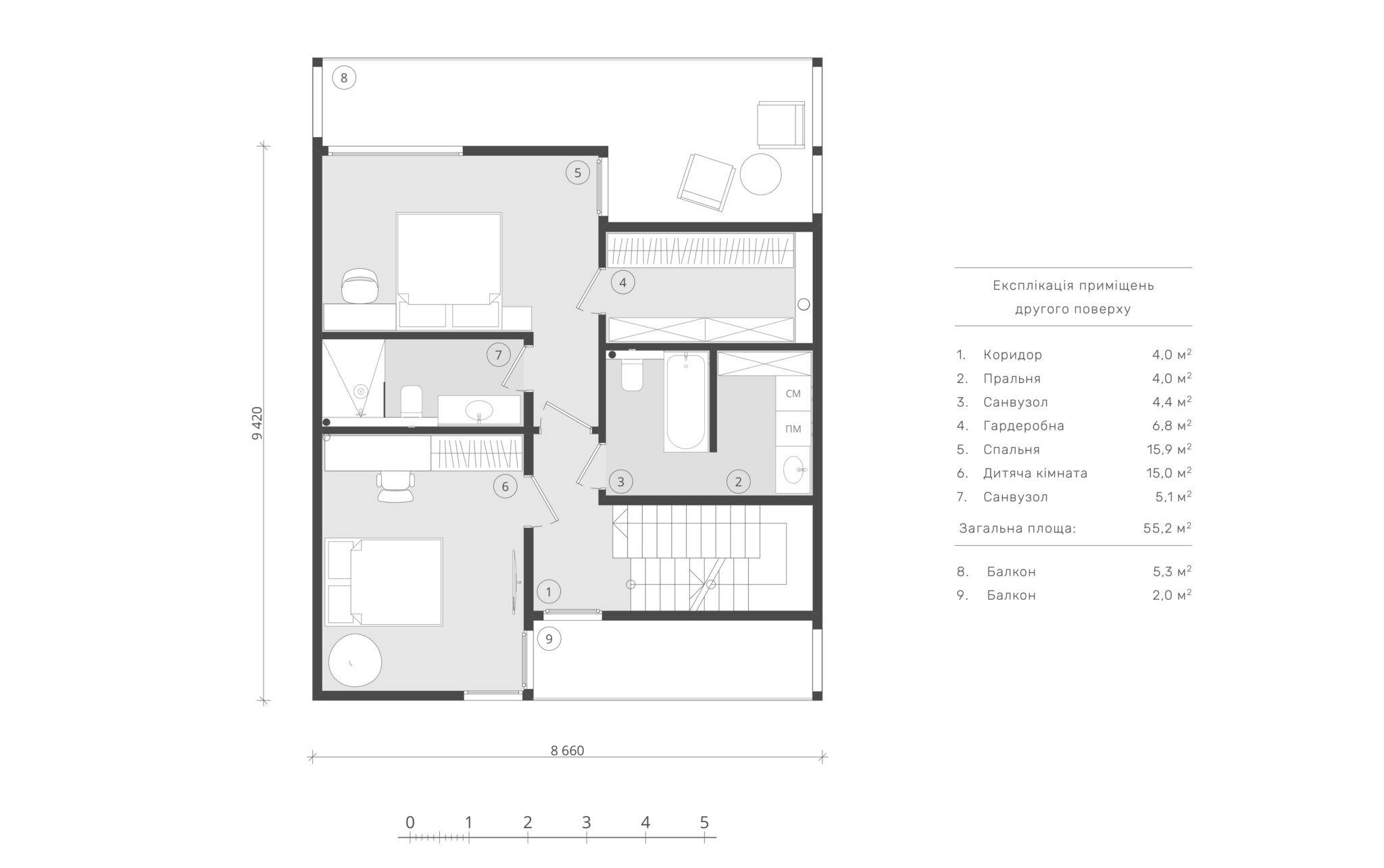 ECOPAN model house 2492 – ARL – 2 is a full-fledged energy-efficient house made of SIP-panels, which includes:
