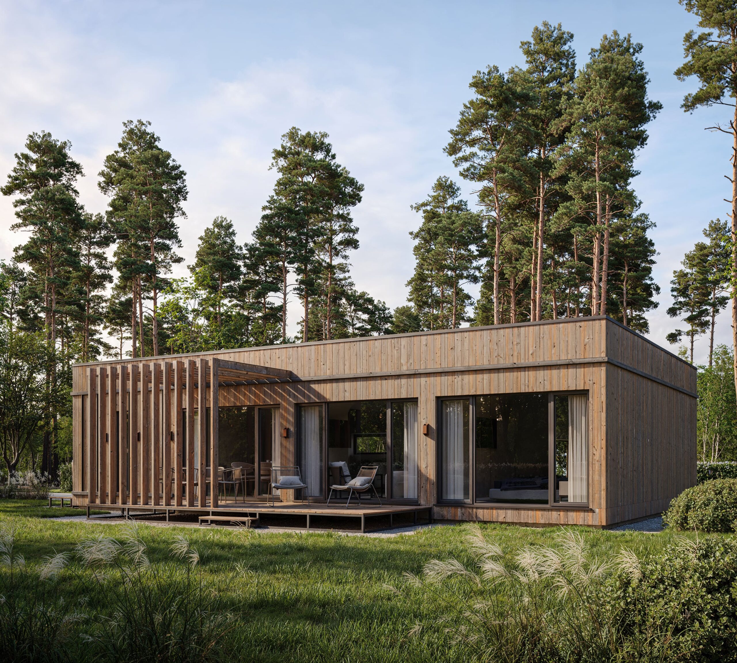 This is a balanced space for happiness: a harmonious blend of modern design and care for the environment. The natural wood facade and warm SIP panels mean not only beauty but also a healthy microclimate and heating savings.