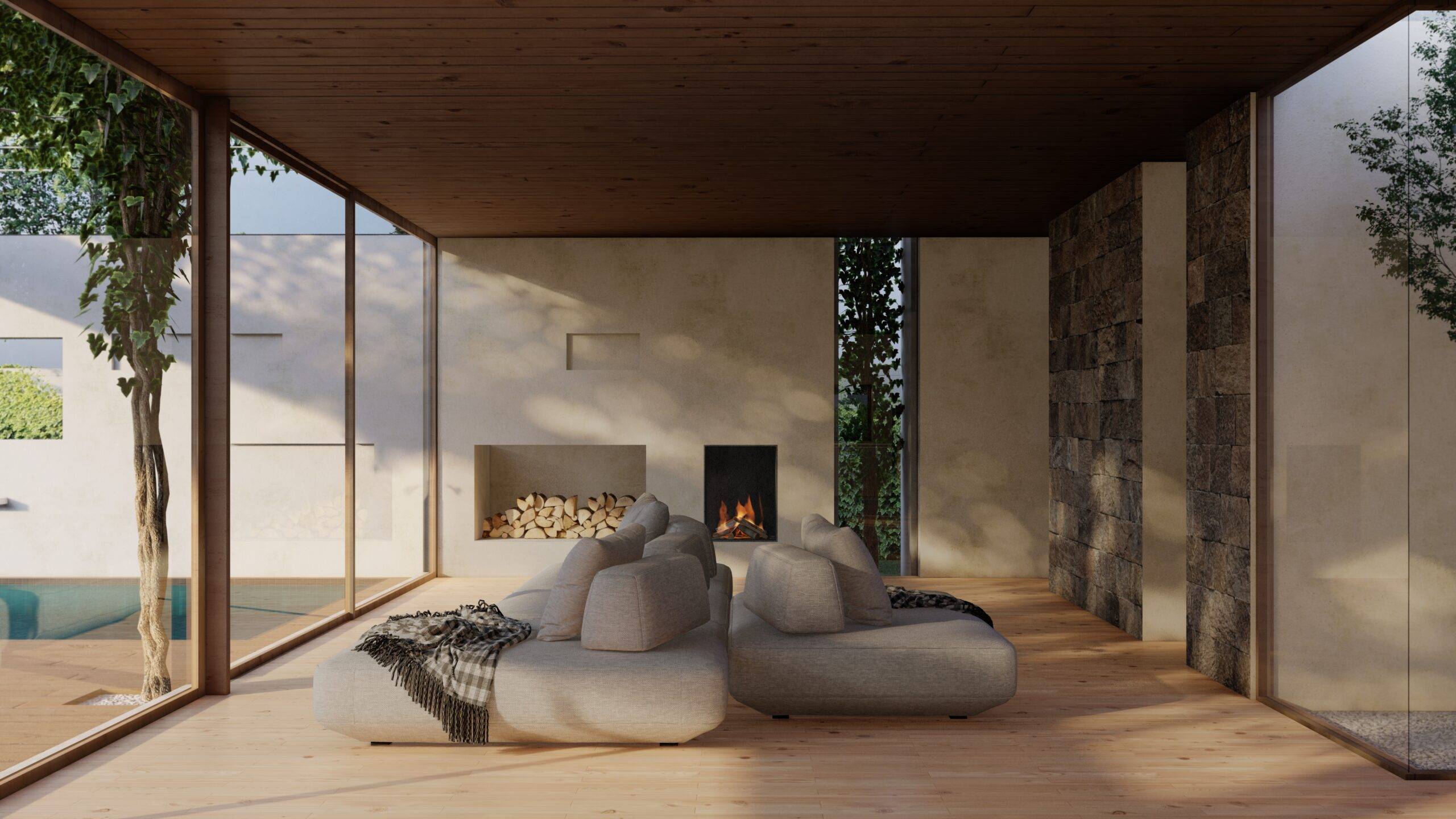 The main concept of this house is a space where the interior directly interacts with nature. The interior and exterior seamlessly blend into each other, creating harmony and unity. Inspired by natural elements such as stone, wood, and plaster, we have created an atmosphere where lightness and tranquility combine with taste and style.