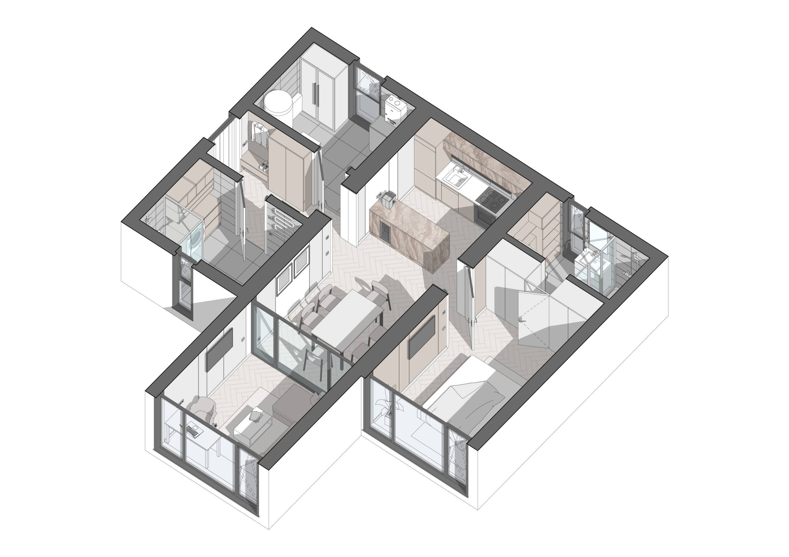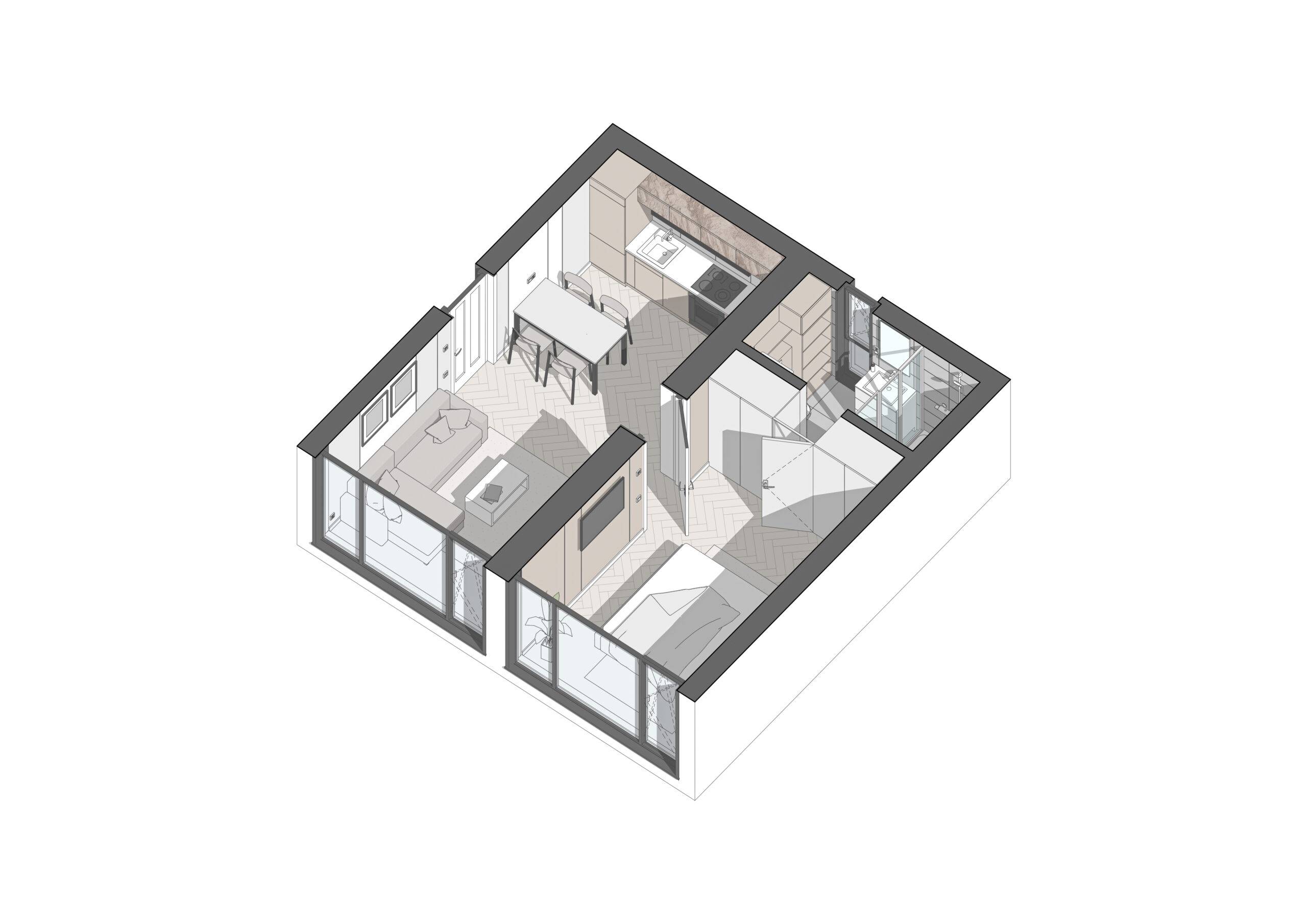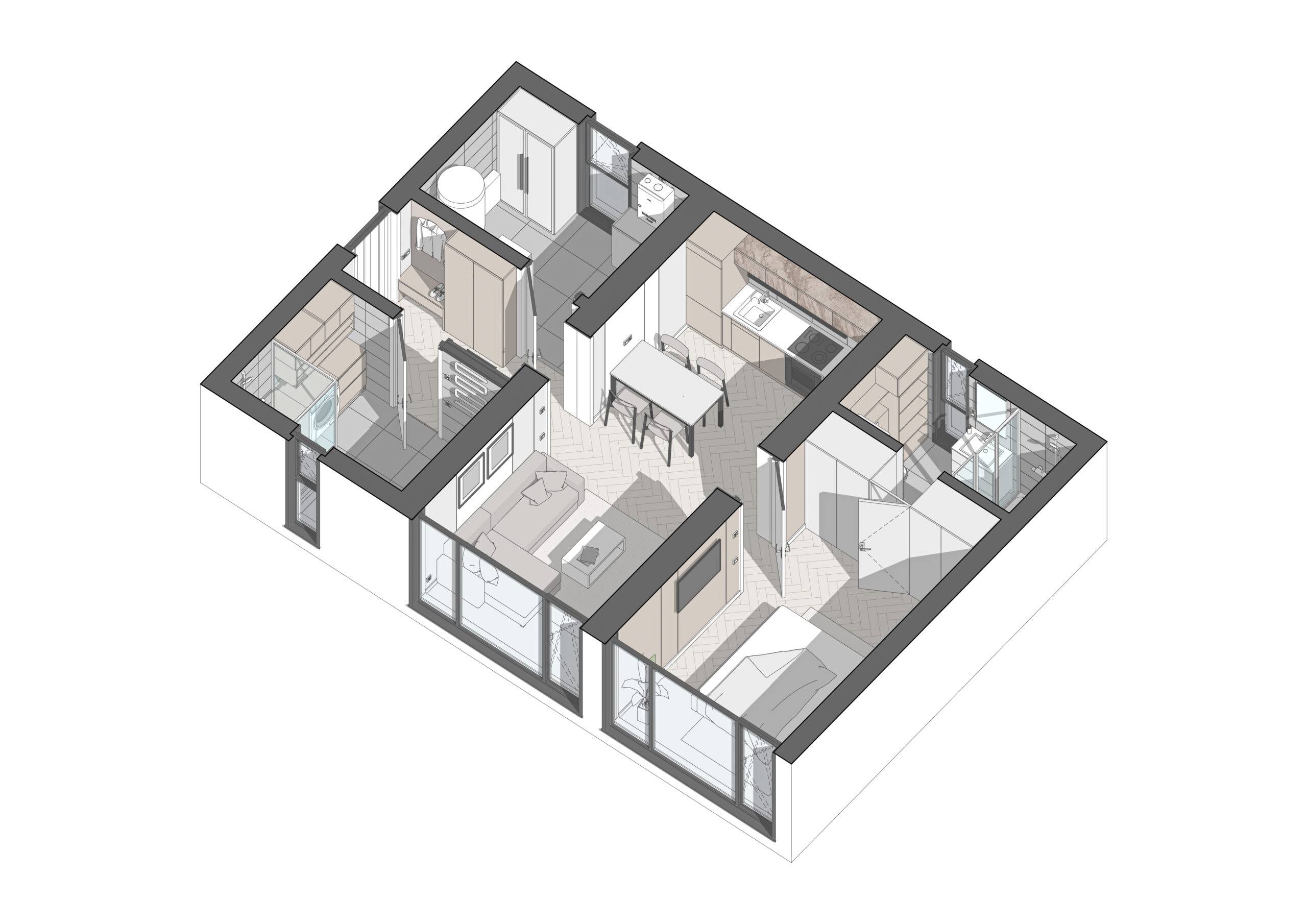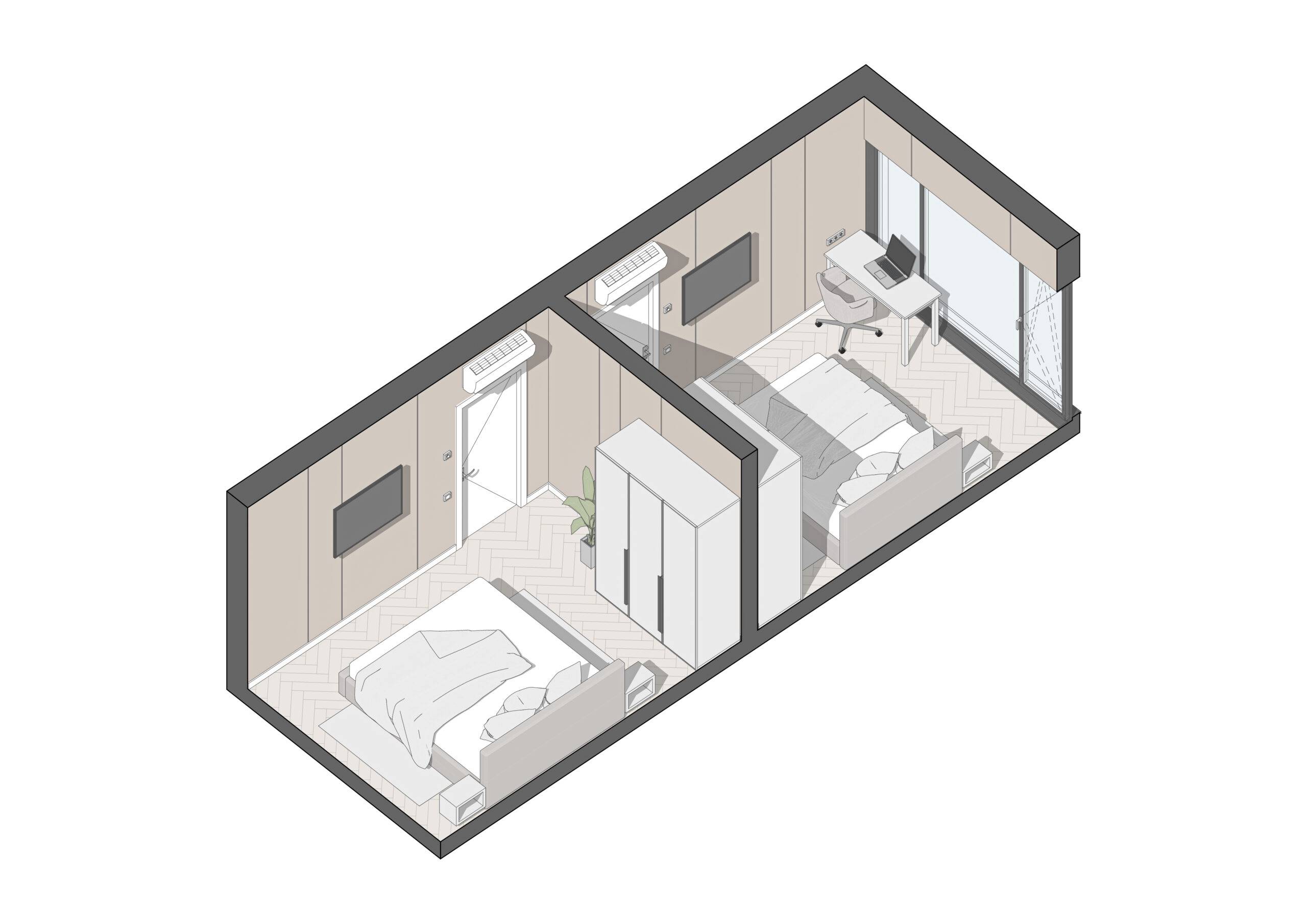 Energy efficiency is one of the main advantages of our modular homes. They consume 50% less energy to maintain a comfortable climate, making them an ideal choice for private homes. In addition, our modular homes can be assembled from 7 standard modules, which allows you to create a home of any configuration. If necessary, the house can be expanded or changed over time, making it versatile for different needs.