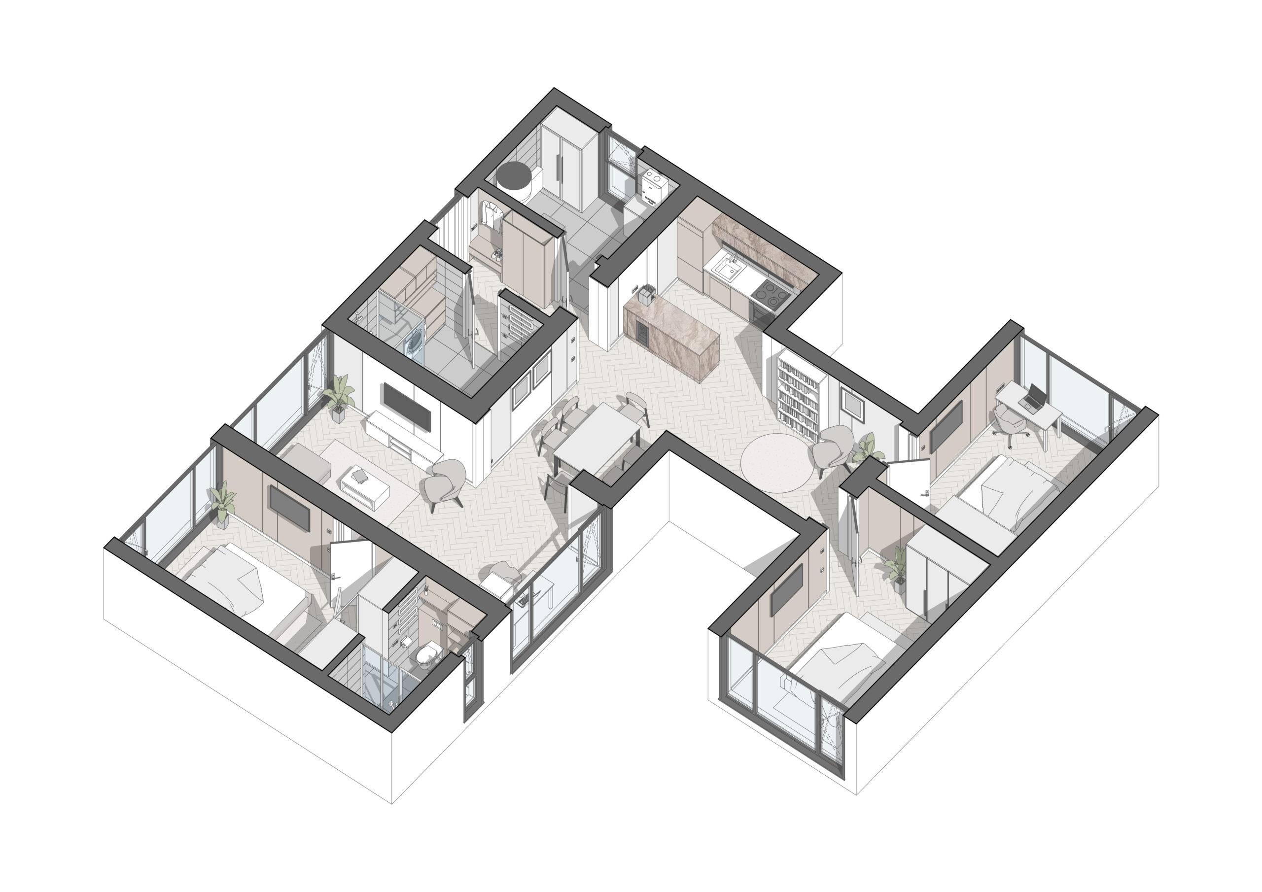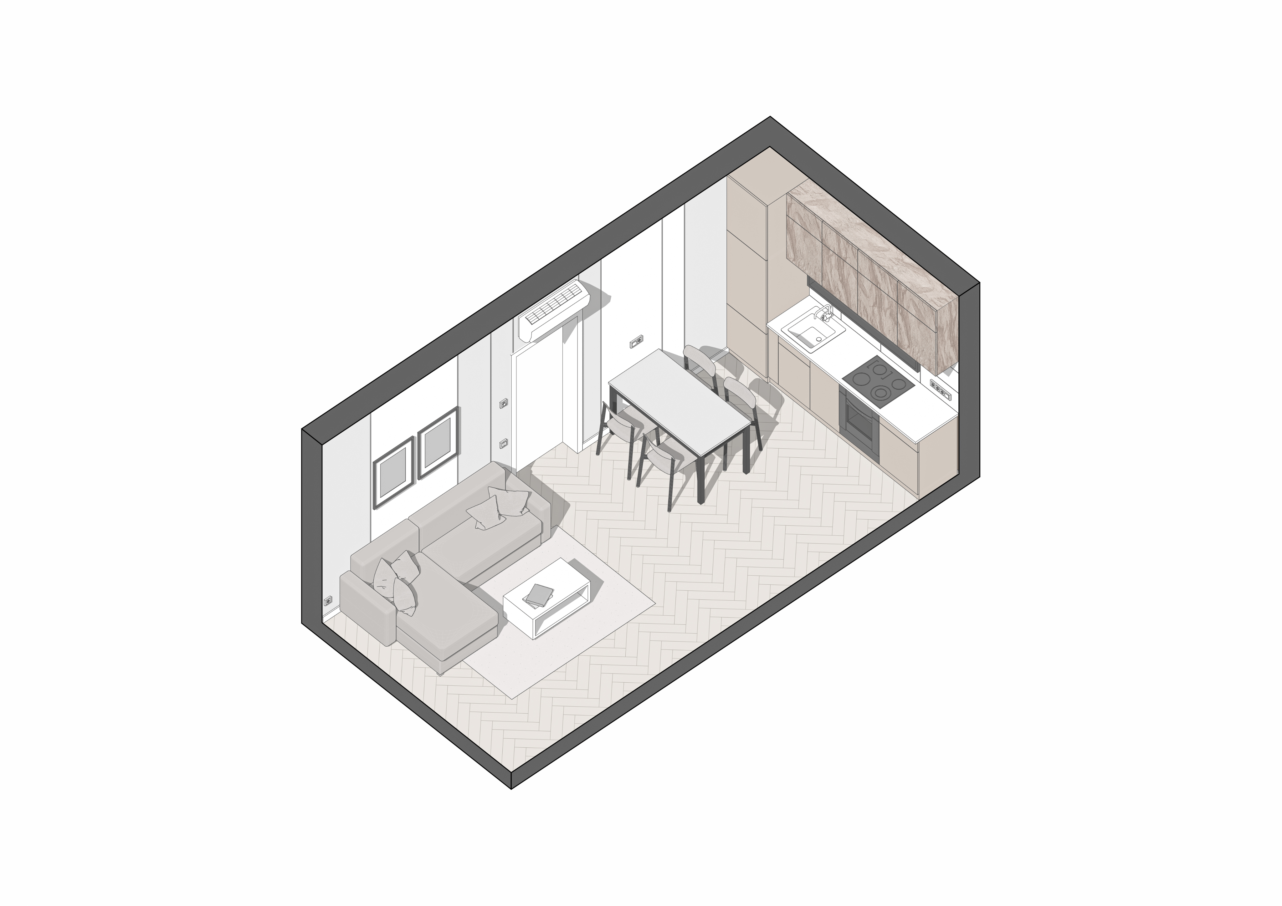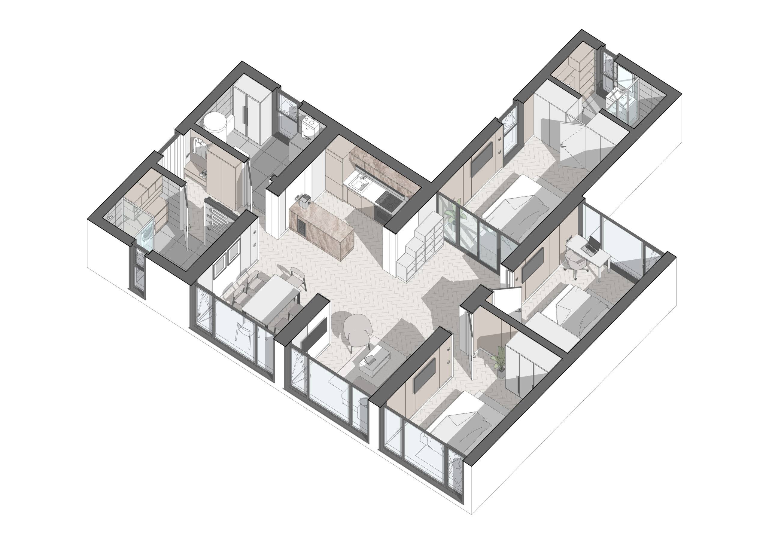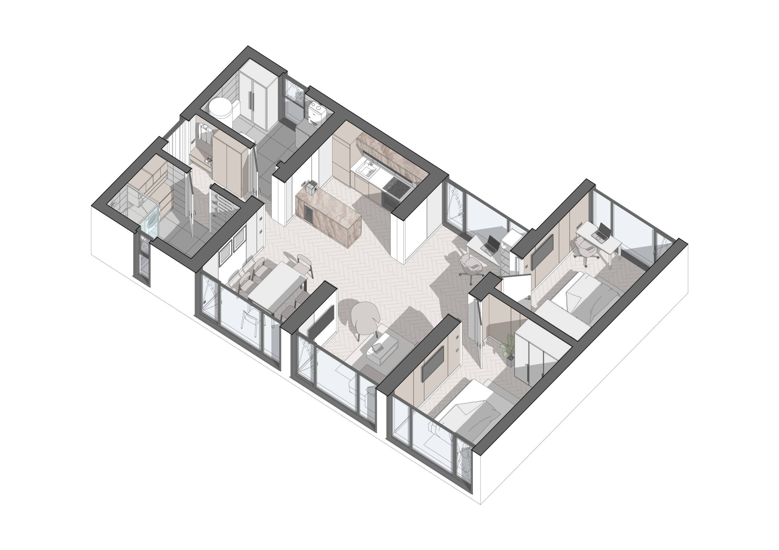 Energy efficiency is one of the main advantages of our modular homes. They consume 50% less energy to maintain a comfortable climate, making them an ideal choice for private homes. In addition, our modular homes can be assembled from 7 standard modules, which allows you to create a home of any configuration. If necessary, the house can be expanded or changed over time, making it versatile for different needs.