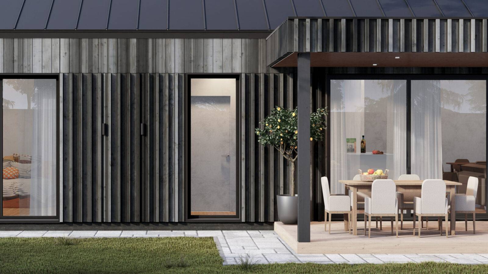 Проект типового заміського будинку загальною площею 140 м.кв. В будинку 3 спальні, великий простір кухні-вітальні та приміщення для усамітнення на горищі. Високі стелі та мансардні вікна роблять простір світлим, створюють комфортне середовище, що не пригнічує. Будинок підійде для сімей з різною кількістю дітей та різних стилів життя. Краса в деталях, нічого зайвого.